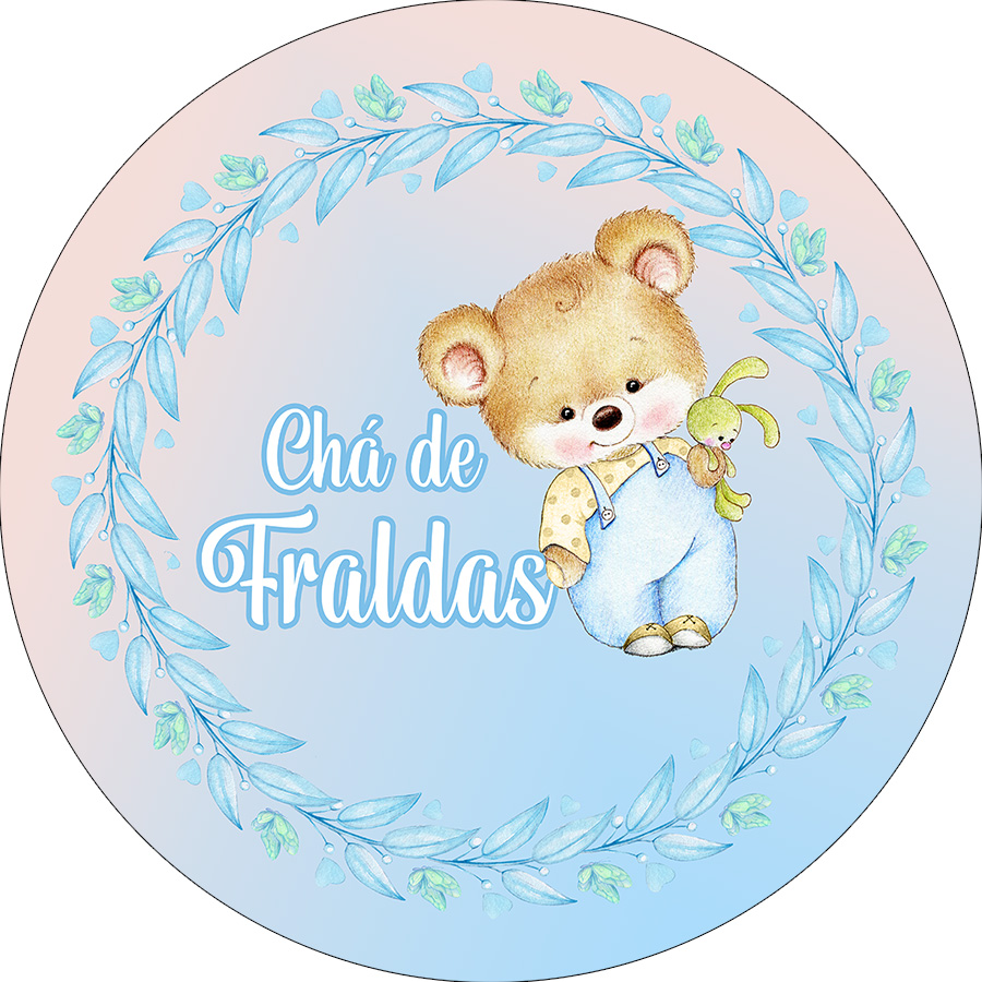 Painel De Festa Redondo 1,50x1,50 - Chá de Fraldas Ursinho Azul 061