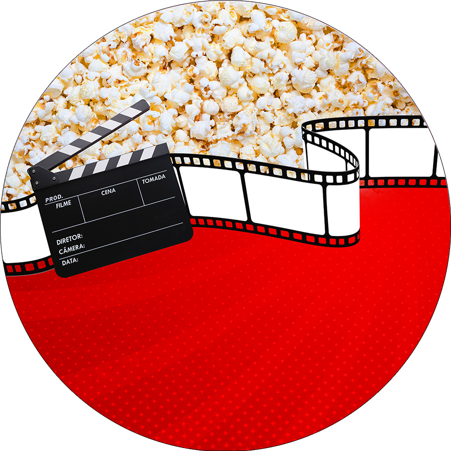 Painel De Festa Redondo 1,50x1,50 - Cinema Rolo de Filme e Pipoca 007