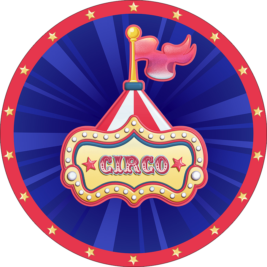 Painel De Festa Redondo 1,50x1,50 - Circo Tradicional Azul com Vermelho 039