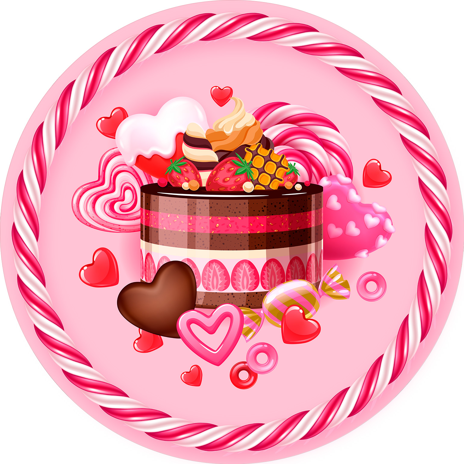 Painel De Festa Redondo 1,50x1,50 - Confeitaria Doces Rosas 022