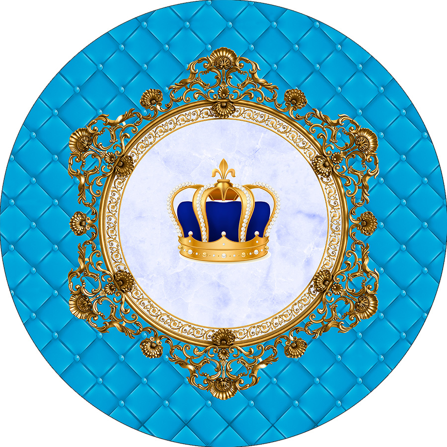 Painel De Festa Redondo 1,50x1,50 - Coroa Realeza Azul Claro 005
