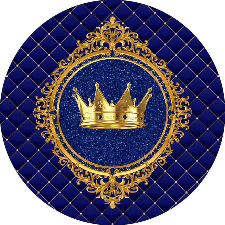 Painel De Festa Redondo 1,50x1,50 - Coroa Realeza Azul e Dourado 011