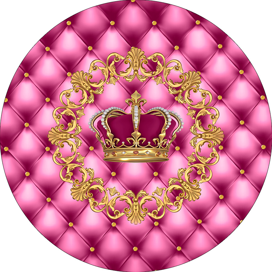 Painel De Festa Redondo 1,50x1,50 - Coroa Realeza Capitonê Pink 016