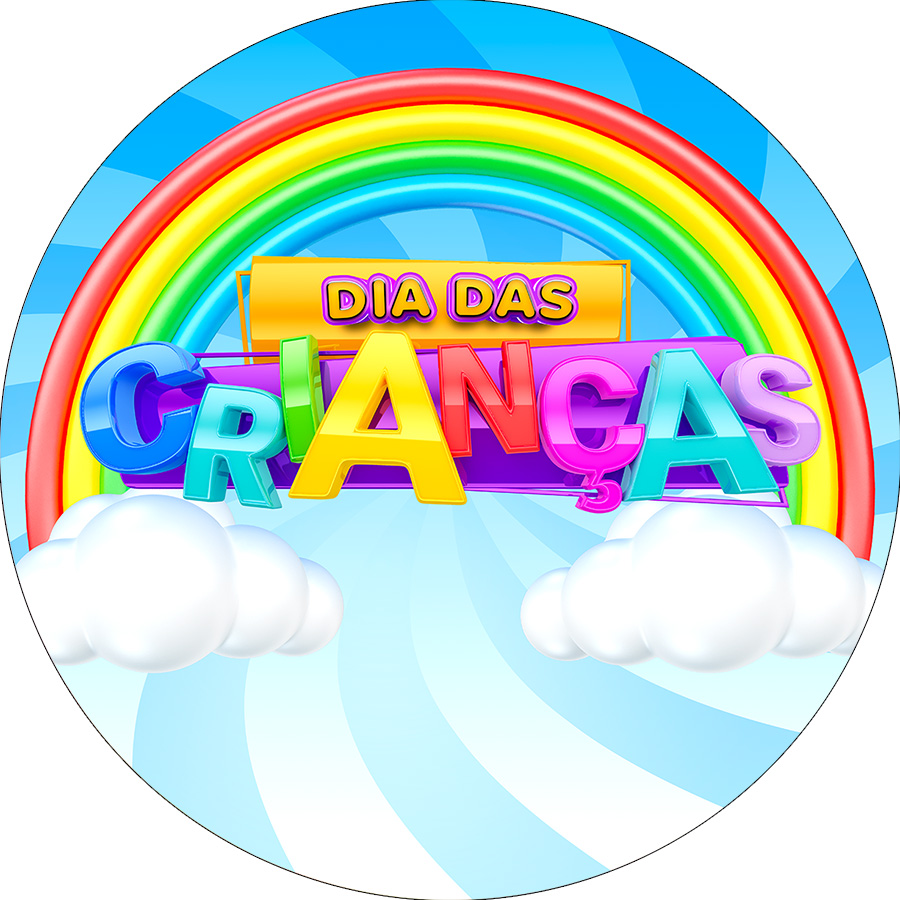 Painel De Festa Redondo 1,50x1,50 - Dia das Crianças Céu Arco-Íris 044