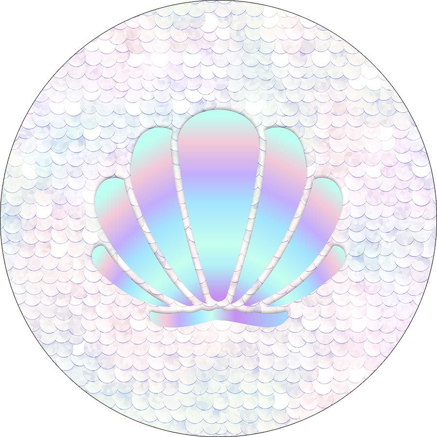 Painel De Festa Redondo 1,50x1,50 - Escamas de Sereia e Concha 015