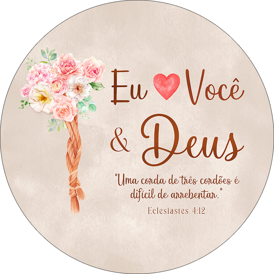 Painel De Festa Redondo 1,50x1,50 - Eu Amo Você & Deus Rosa e Branco 035