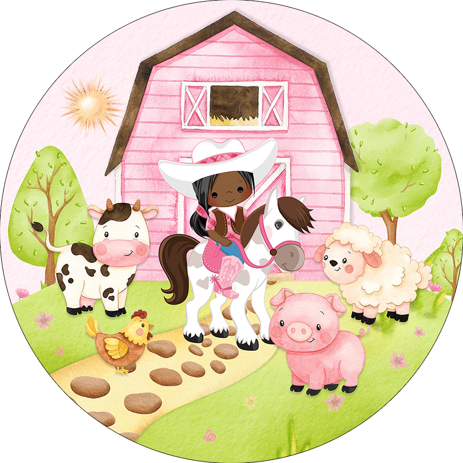 Painel De Festa Redondo 1,50x1,50 - Fazendinha Vaqueirinha Cute 038