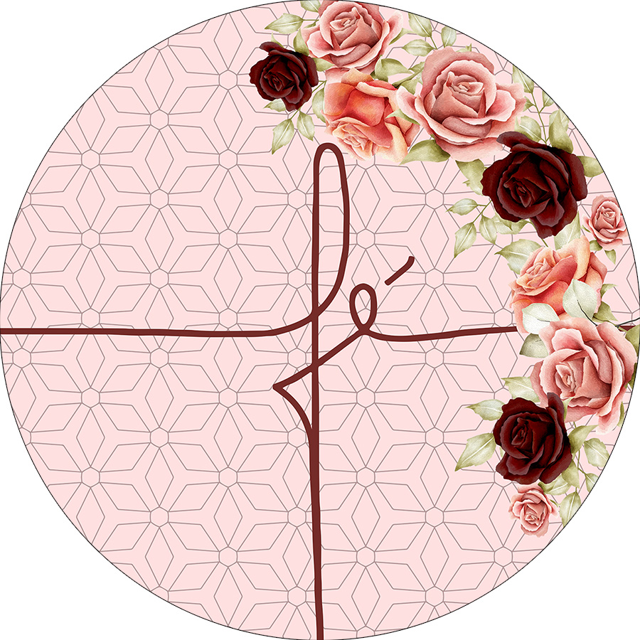 Painel De Festa Redondo 1,50x1,50 - Fé Geométrico Floral Rosa 008