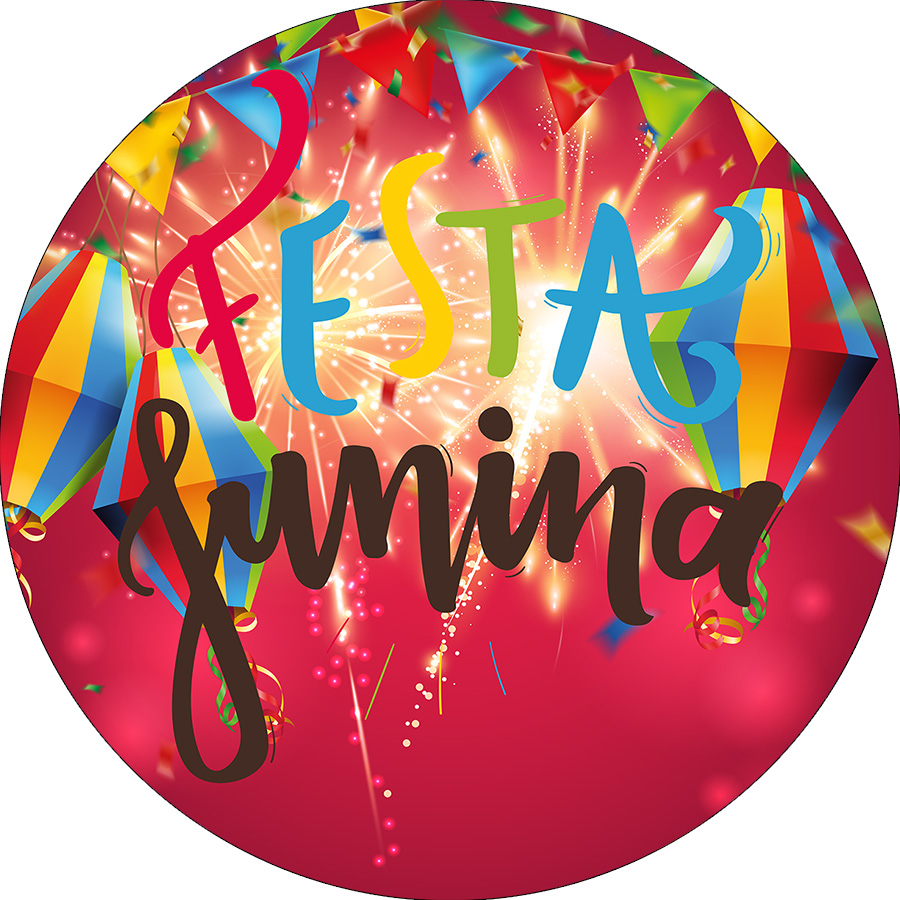 Painel De Festa Redondo 1,50x1,50 - Festa Junina Fundo Vermelho 026