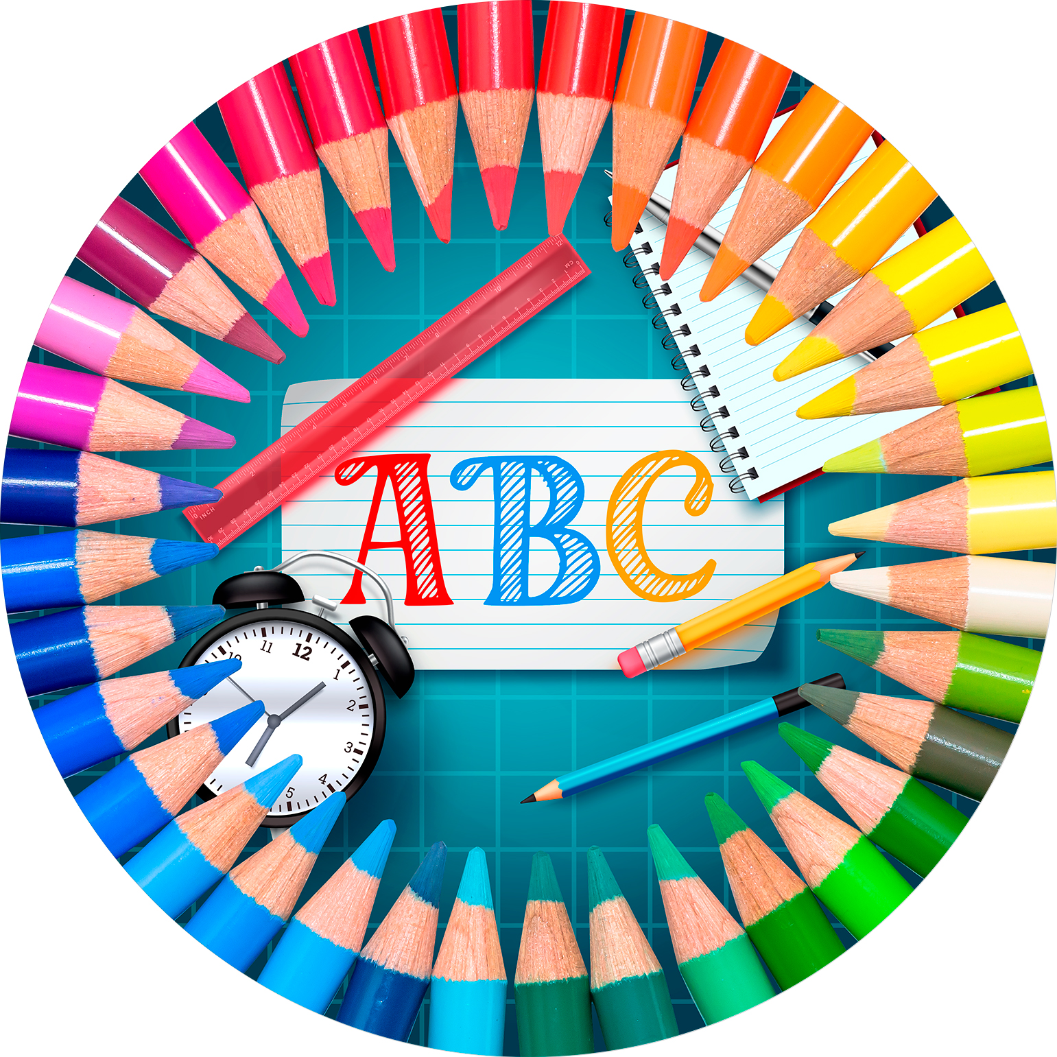 Painel De Festa Redondo 1,50x1,50 - Formatura Lápis de Cor Coloridos 008