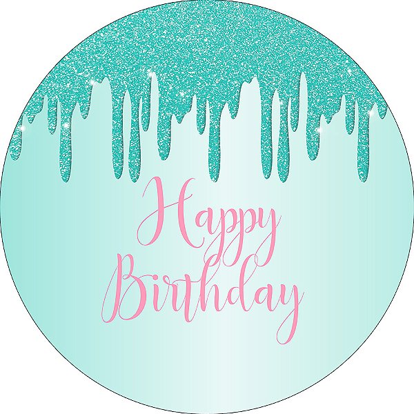 Painel De Festa Redondo 1,50x1,50 - Happy Birthday Efeito Glitter Escorrendo 006