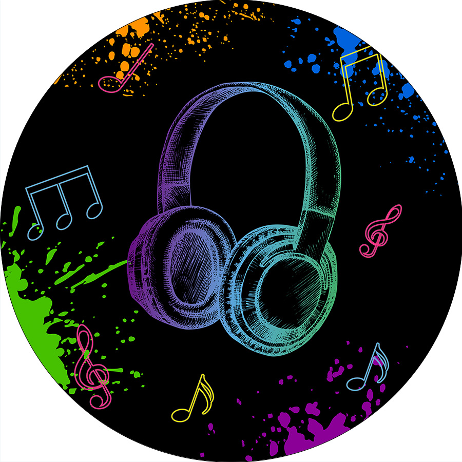 Painel De Festa Redondo 1,50x1,50 - Headphone Efeito Neon 004