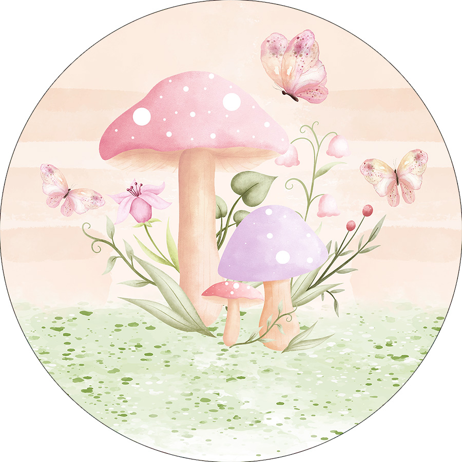 Painel De Festa Redondo 1,50x1,50 - Jardim de Cogumelos 059