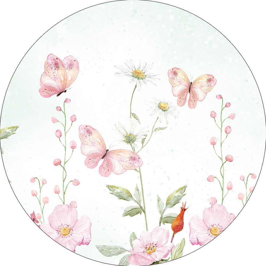 Painel De Festa Redondo 1,50x1,50 - Jardim Rosa e Verde Aquarela 058