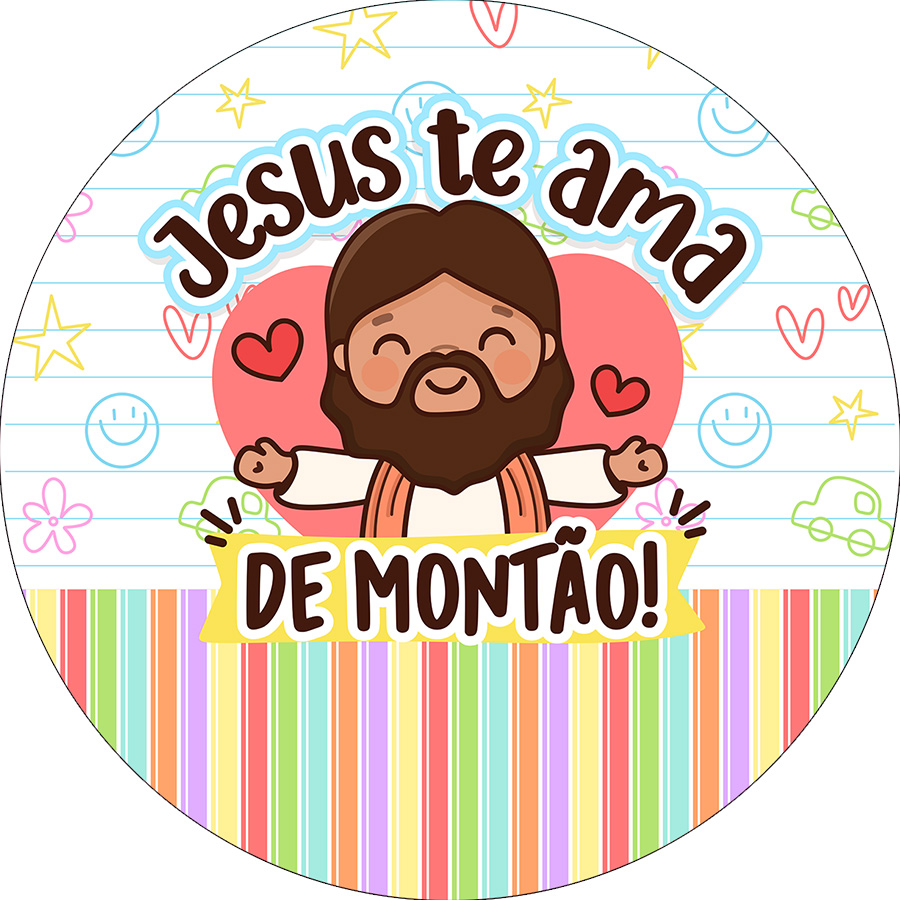 Painel De Festa Redondo 1,50x1,50 - Jesus Te Ama de Montão 037