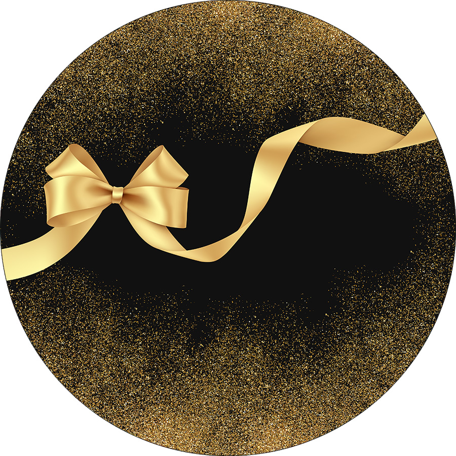 Painel De Festa Redondo 1,50x1,50 - Laço Dourado Efeito Glitter 073