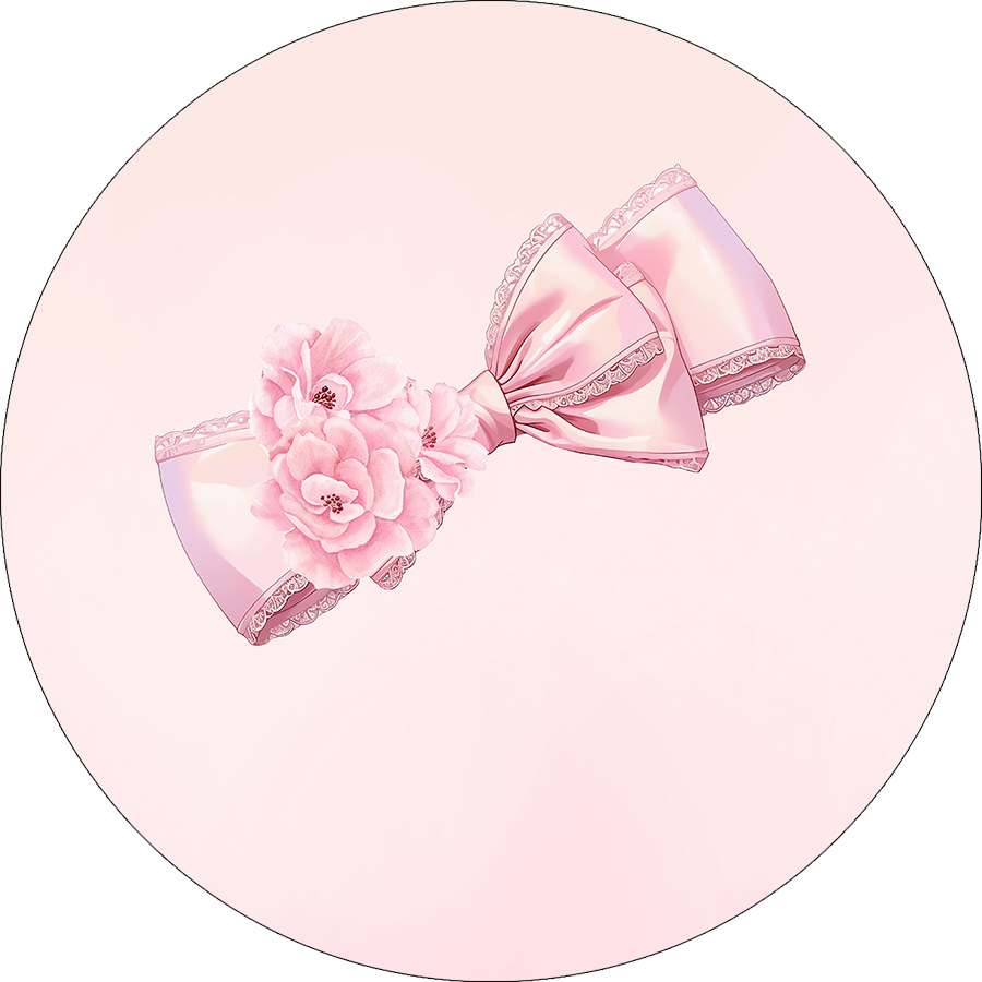 Painel De Festa Redondo 1,50x1,50 - Laço Rosa com Flores 068