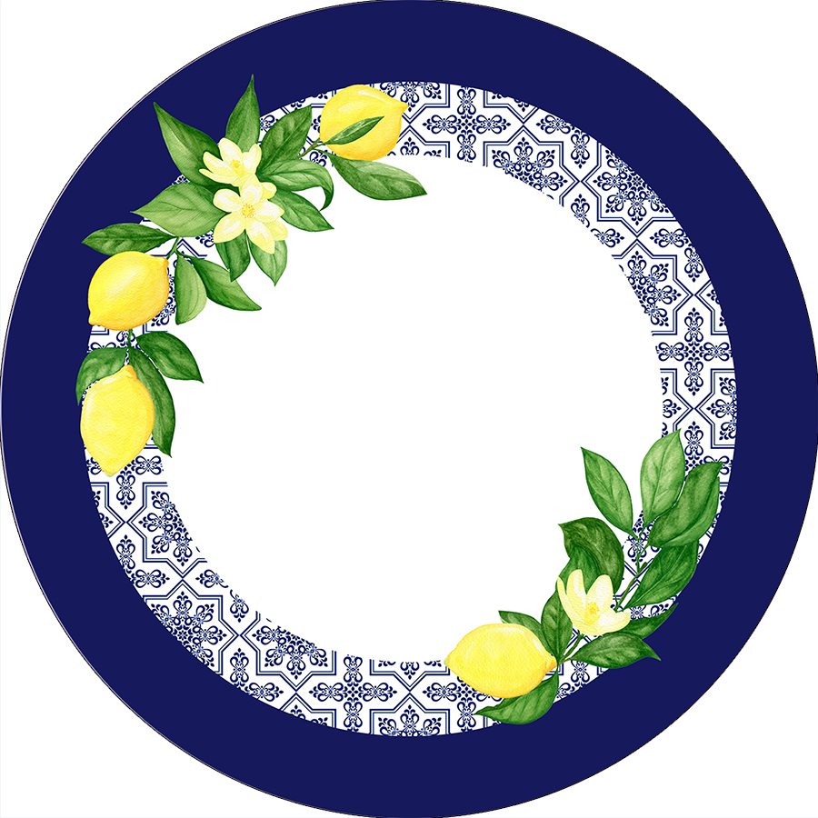 Painel De Festa Redondo 1,50x1,50 - Limão Siciliano Azulejo Azul Marinho 041