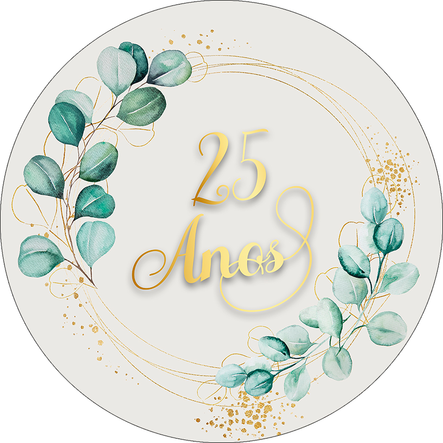 Painel De Festa Redondo 1,50x1,50 - Meus 25 Anos Geométrico com Folhagens 049
