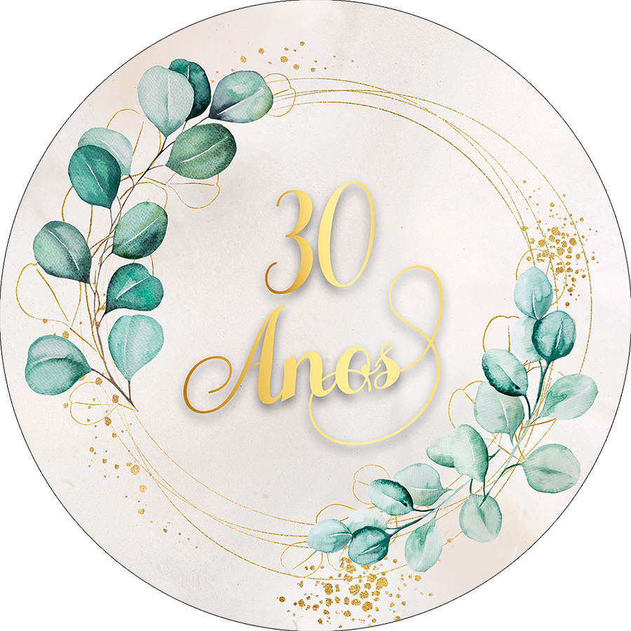 Painel De Festa Redondo 1,50x1,50 - Meus 30 Anos Geométrico com Folhagens 050