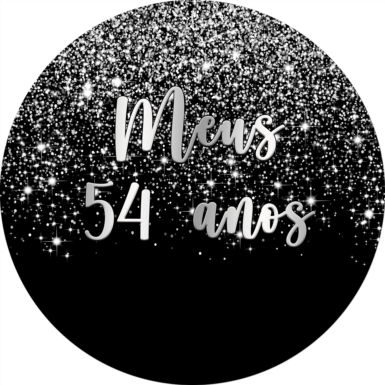 Painel De Festa Redondo 1,50x1,50 - Meus 54 Anos Efeito Glitter Prata 033
