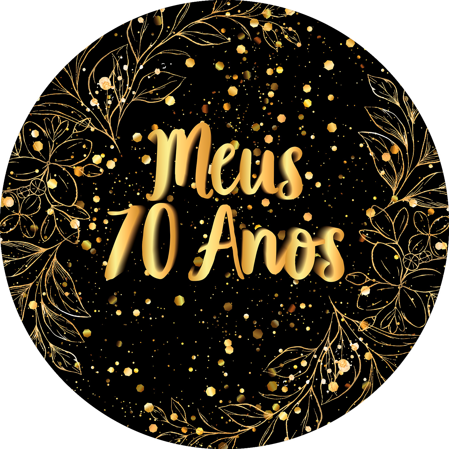 Painel De Festa Redondo 1,50x1,50 - Meus 70 Anos Efeito Brilhos Dourado 129