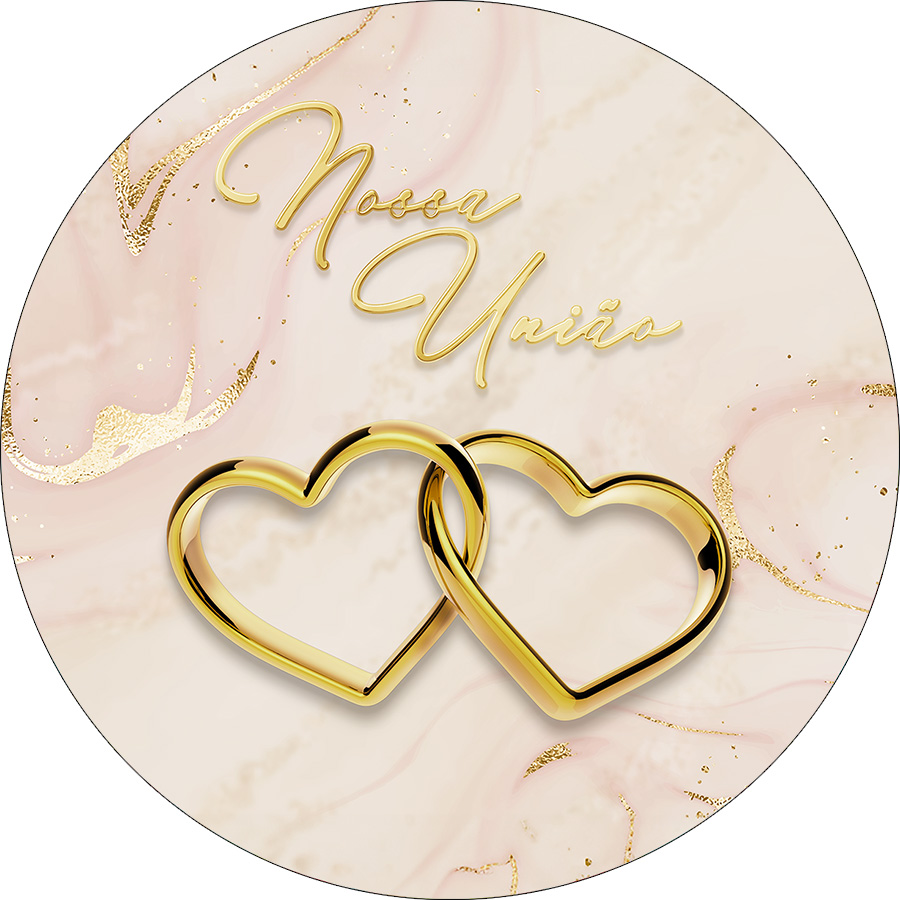 Painel De Festa Redondo 1,50x1,50 - Nossa União Dourado e Bege 038