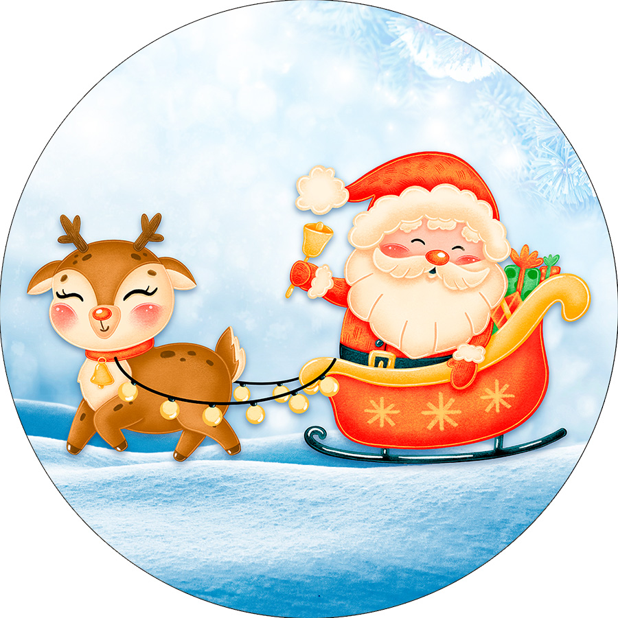 Painel De Festa Redondo 1,50x1,50 - Papai Noel Cute e Rena 020