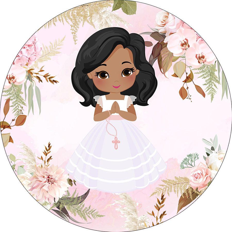 Painel De Festa Redondo 1,50x1,50 - Primeira Eucaristia Menina Cute 051