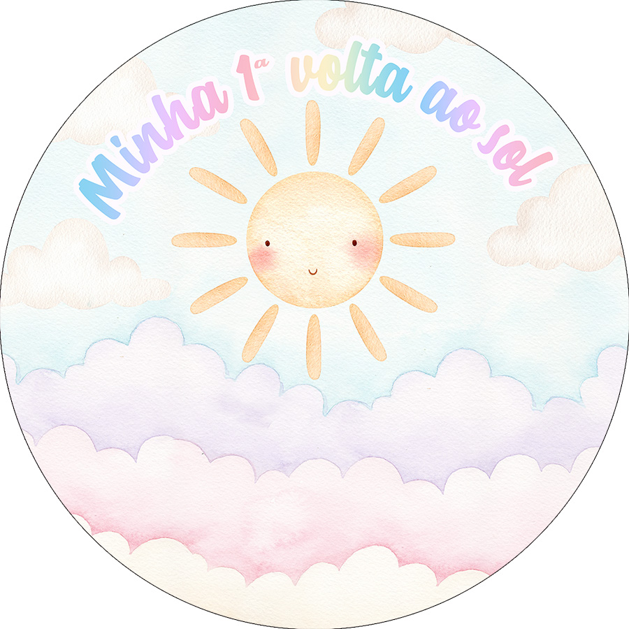 Painel De Festa Redondo 1,50x1,50 - Primeira Volta ao Sol Colorido Aquarela 053