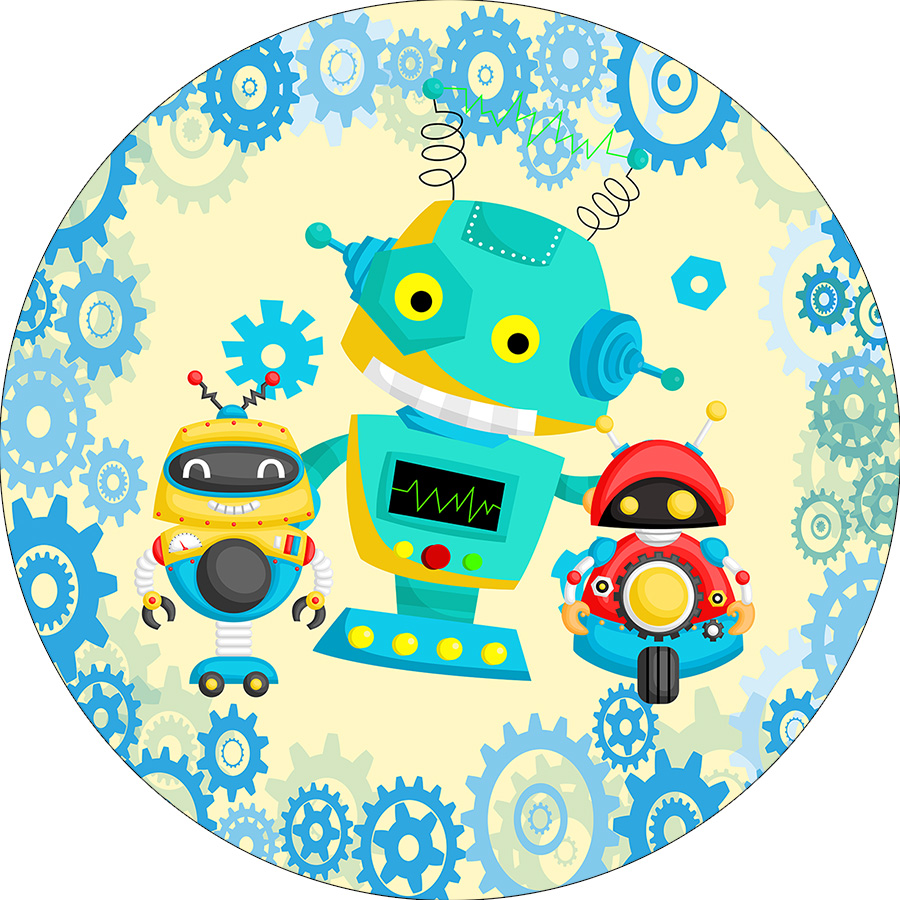 Painel De Festa Redondo 1,50x1,50 - Robôs Cute Engrenagens 021