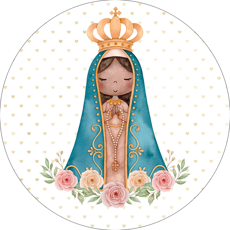 Painel De Festa Redondo 1,50x1,50 - Santa Nossa Senhora Aparecida Floral 002