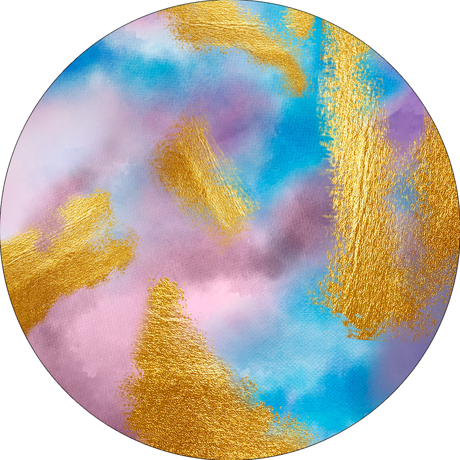 Painel De Festa Redondo 1,50x1,50 - Tie Dye Azul e Dourado 013