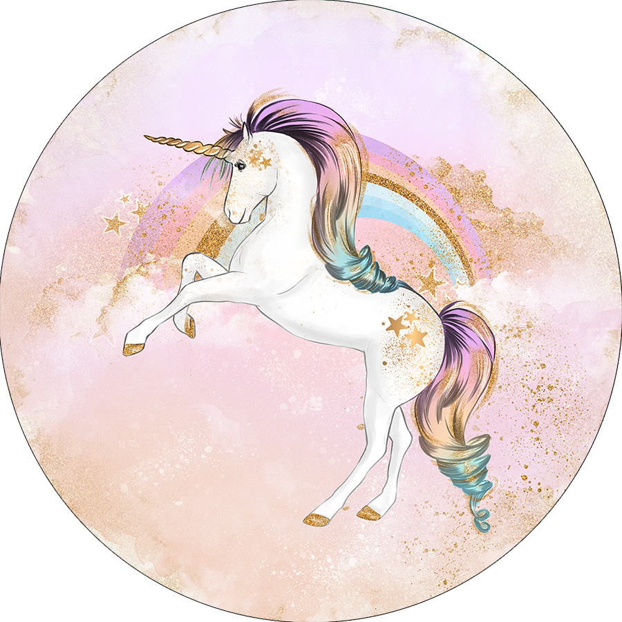 Painel De Festa Redondo 1,50x1,50 - Unicórnio Efeito Glitter 008