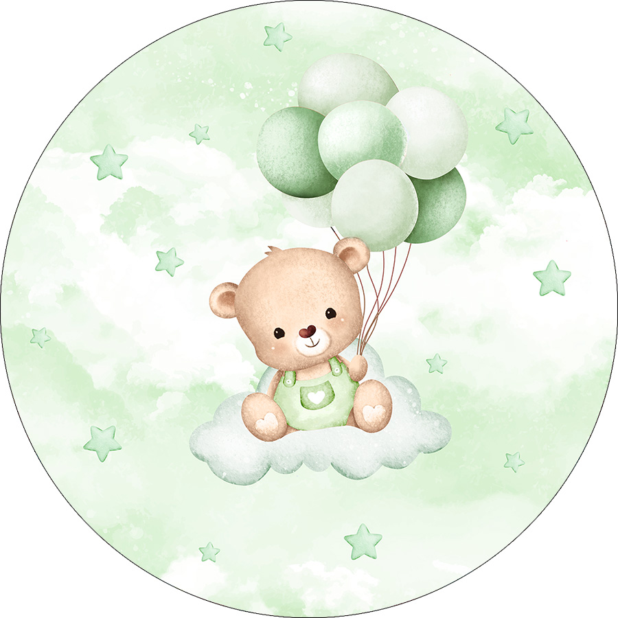 Painel De Festa Redondo 1,50x1,50 - Ursinho de Pelúcia Verde 097