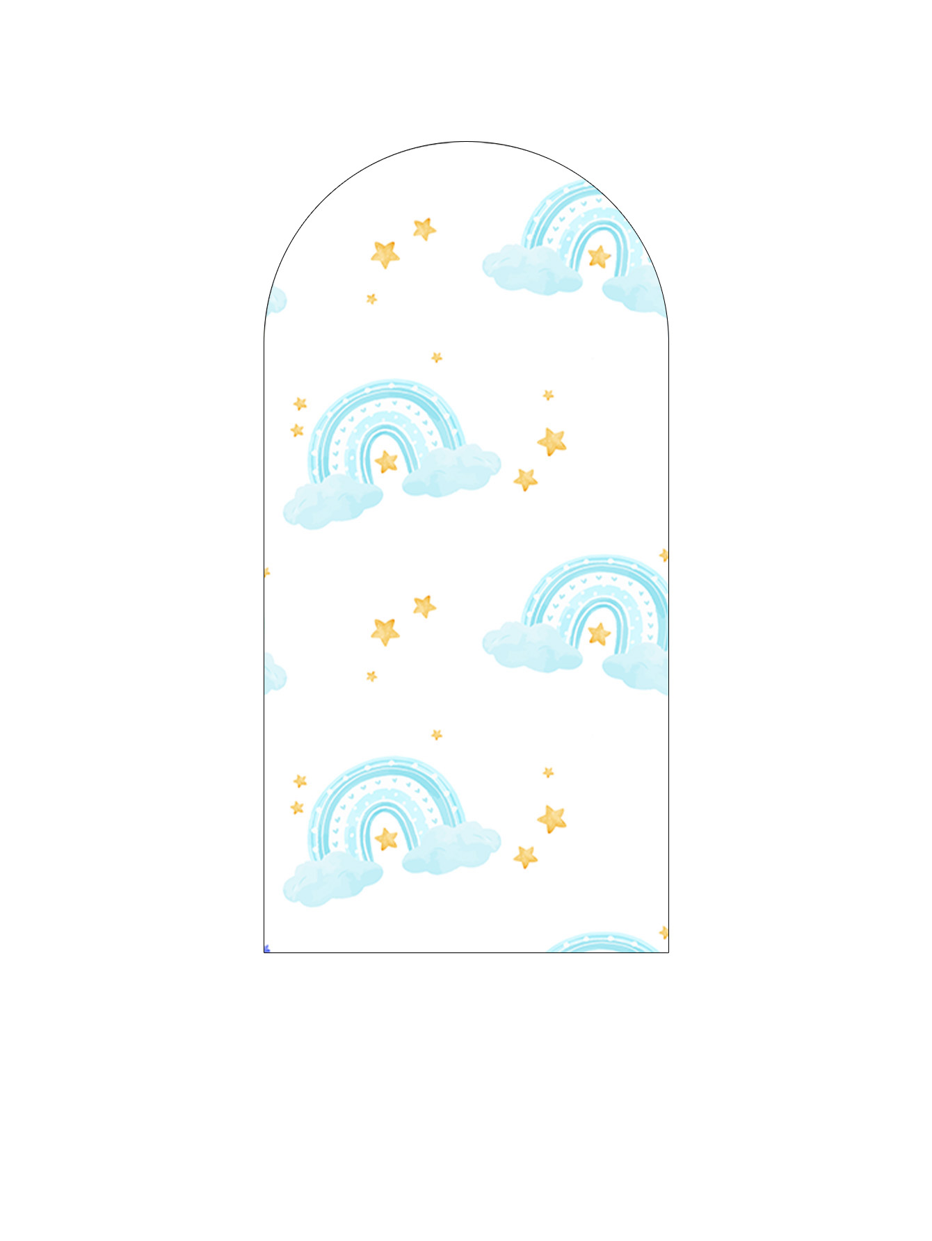 Painel De Festa Romano 1,00x2,00- Arco-íris Azul Com Estrelas 008