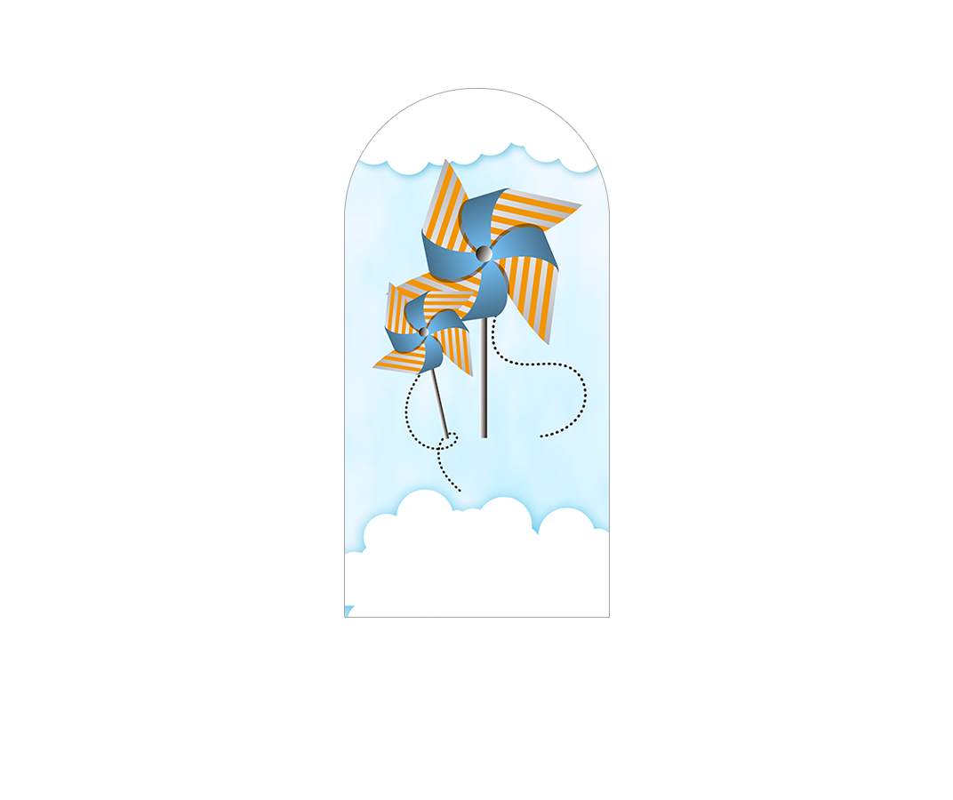Painel De Festa Romano 1,00x2,00- Cataventos Azul e Laranja 002
