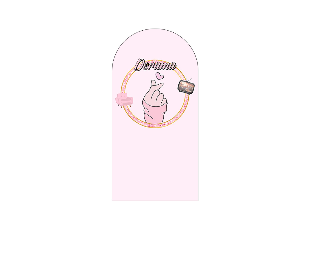 Painel De Festa Romano 1,00x2,00- Dorama Rosa Frame Dourado 008