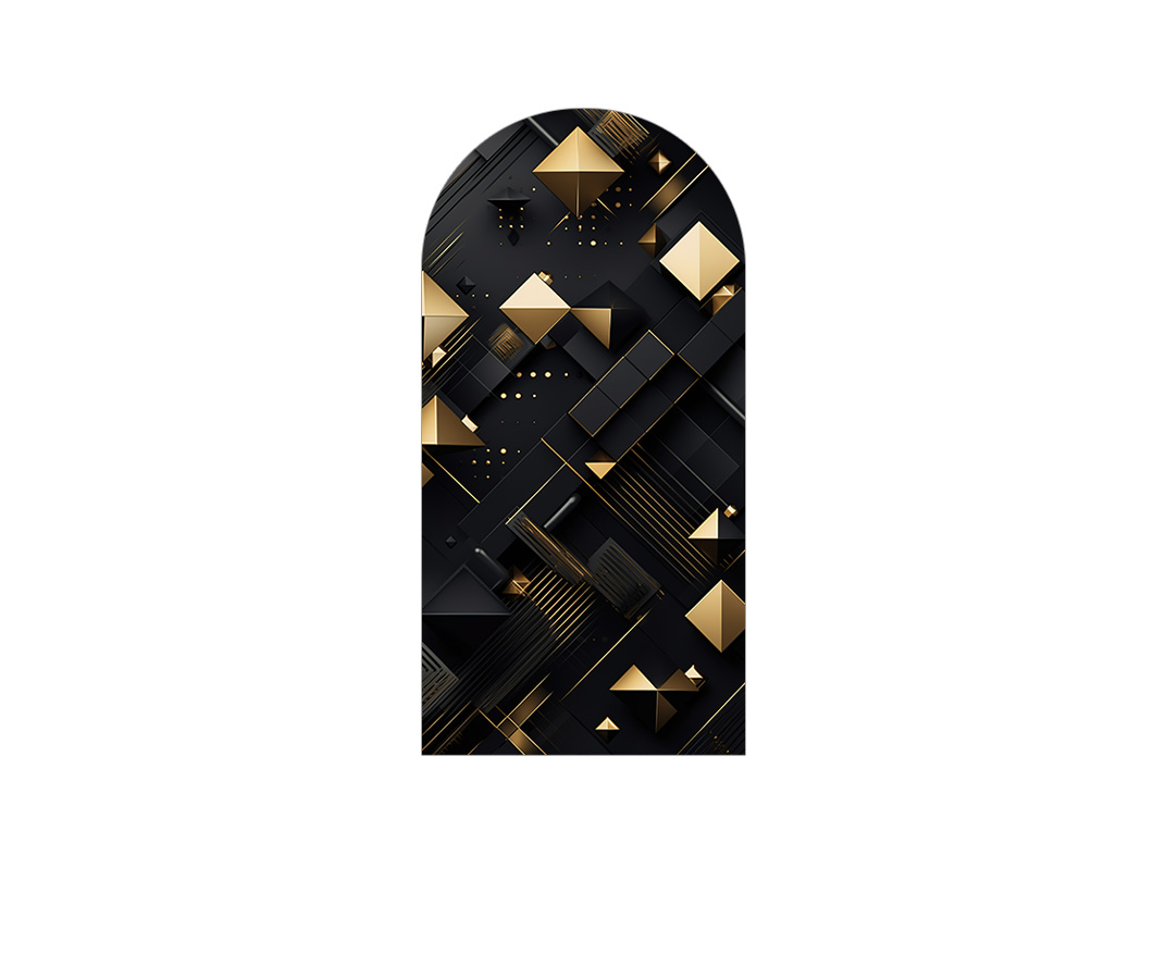 Painel De Festa Romano 1,00x2,00- Efeito Geométrico Preto com Dourado 023