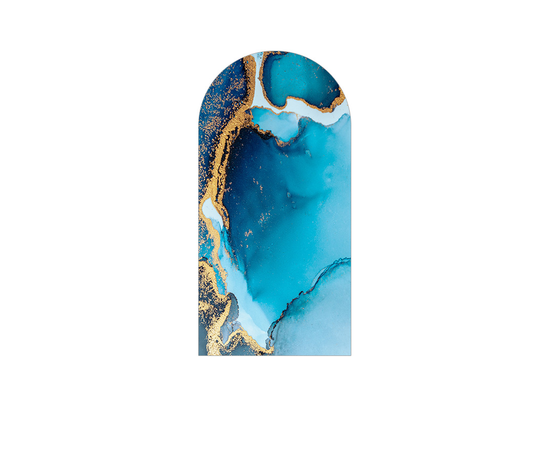 Painel De Festa Romano 1,00x2,00- Efeito Mármore Azul e Dourado 054