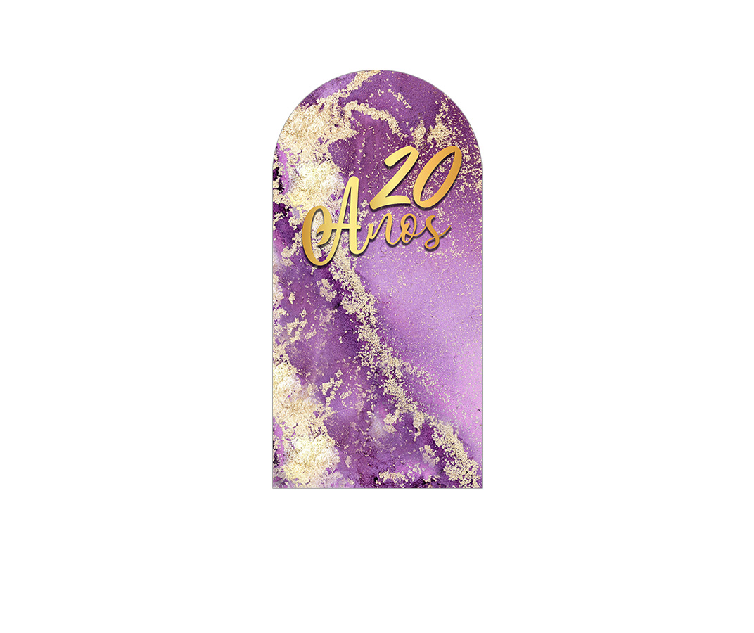 Painel De Festa Romano 1,00x2,00- Efeito Mármore Roxo com Dourado 20 Anos 052