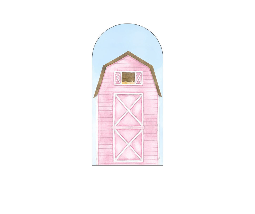 Painel De Festa Romano 1,00x2,00- Fazendinha Celeiro Rosa 054