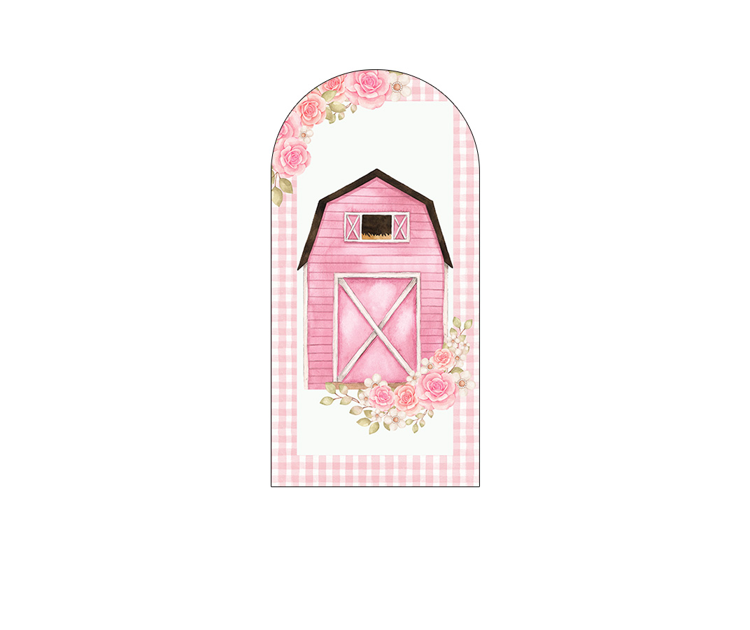 Painel De Festa Romano 1,00x2,00- Fazendinha Rosa Flores 067