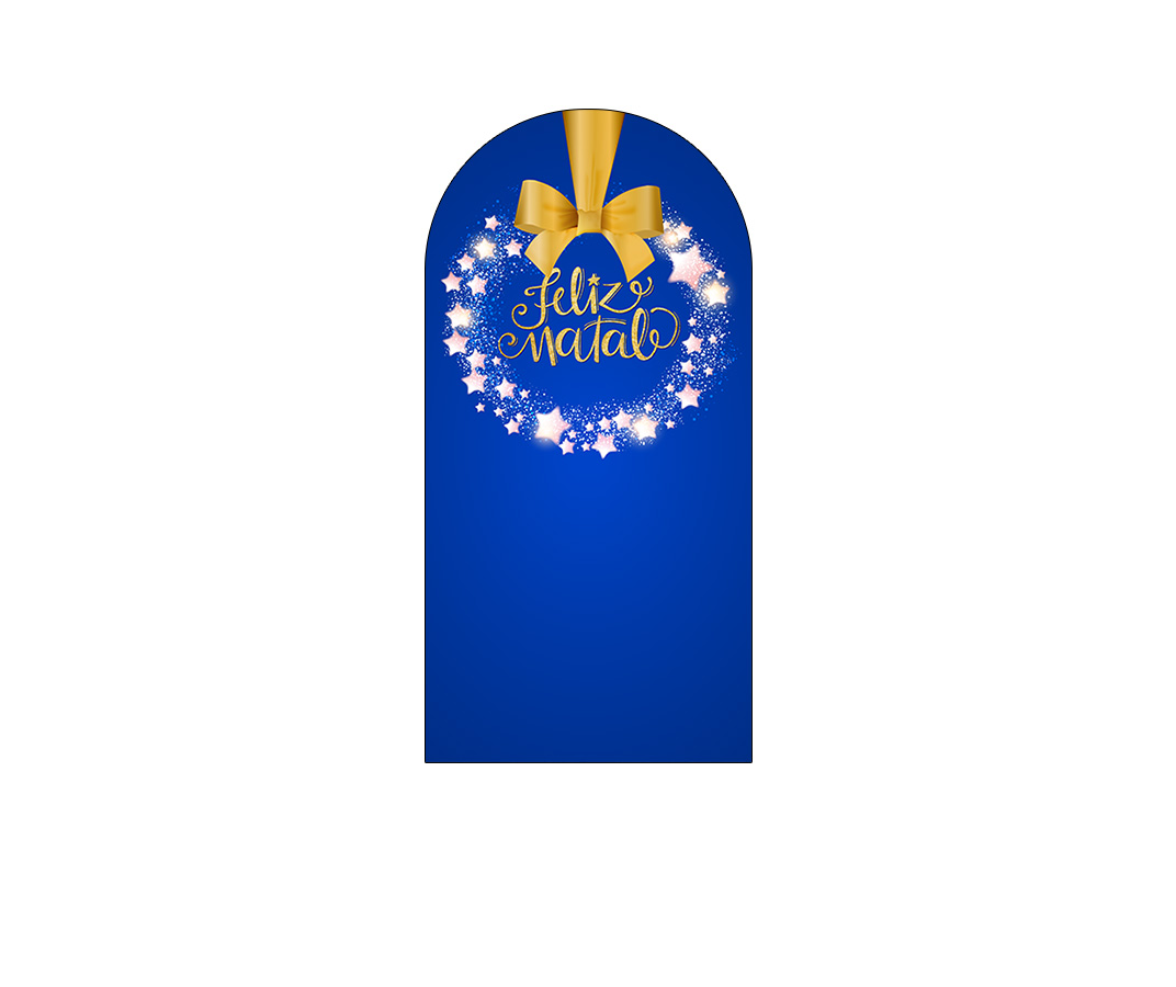 Painel De Festa Romano 1,00x2,00- Feliz Natal Azul e Dourado 036