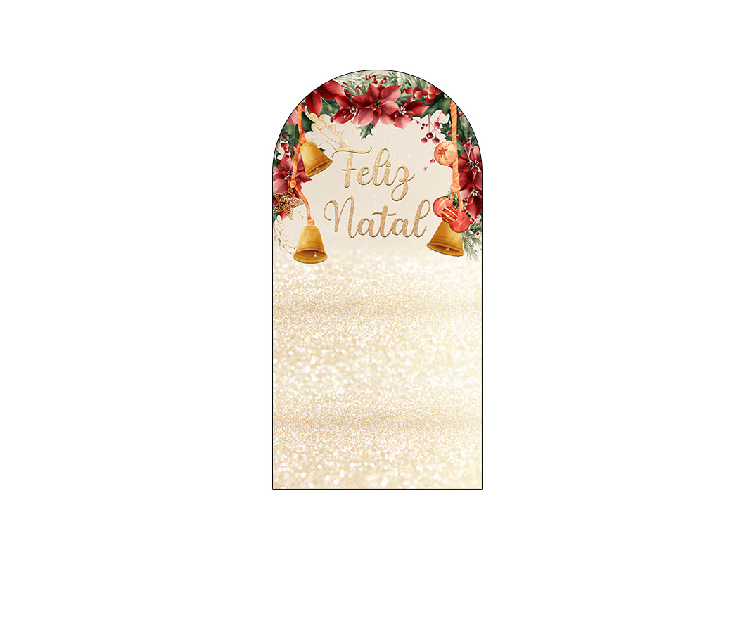 Painel De Festa Romano 1,00x2,00- Feliz Natal Sino e Flores Vermelhos 028
