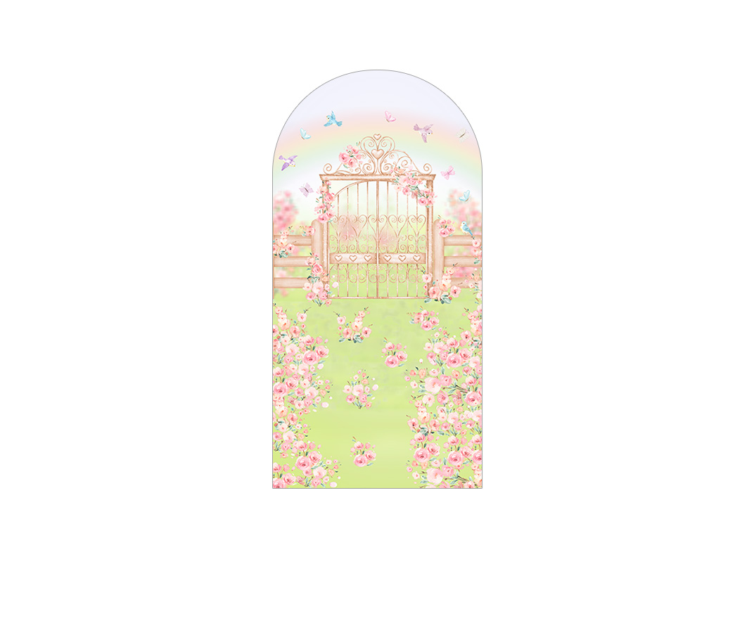 Painel De Festa Romano 1,00x2,00- Jardim Flores Rosas Aquarela 021