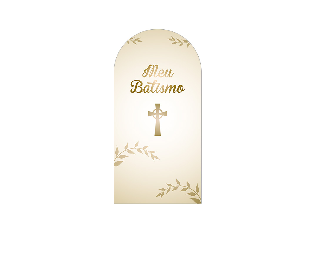 Painel De Festa Romano 1,00x2,00- Meu Batismo Cruz Dourado 006
