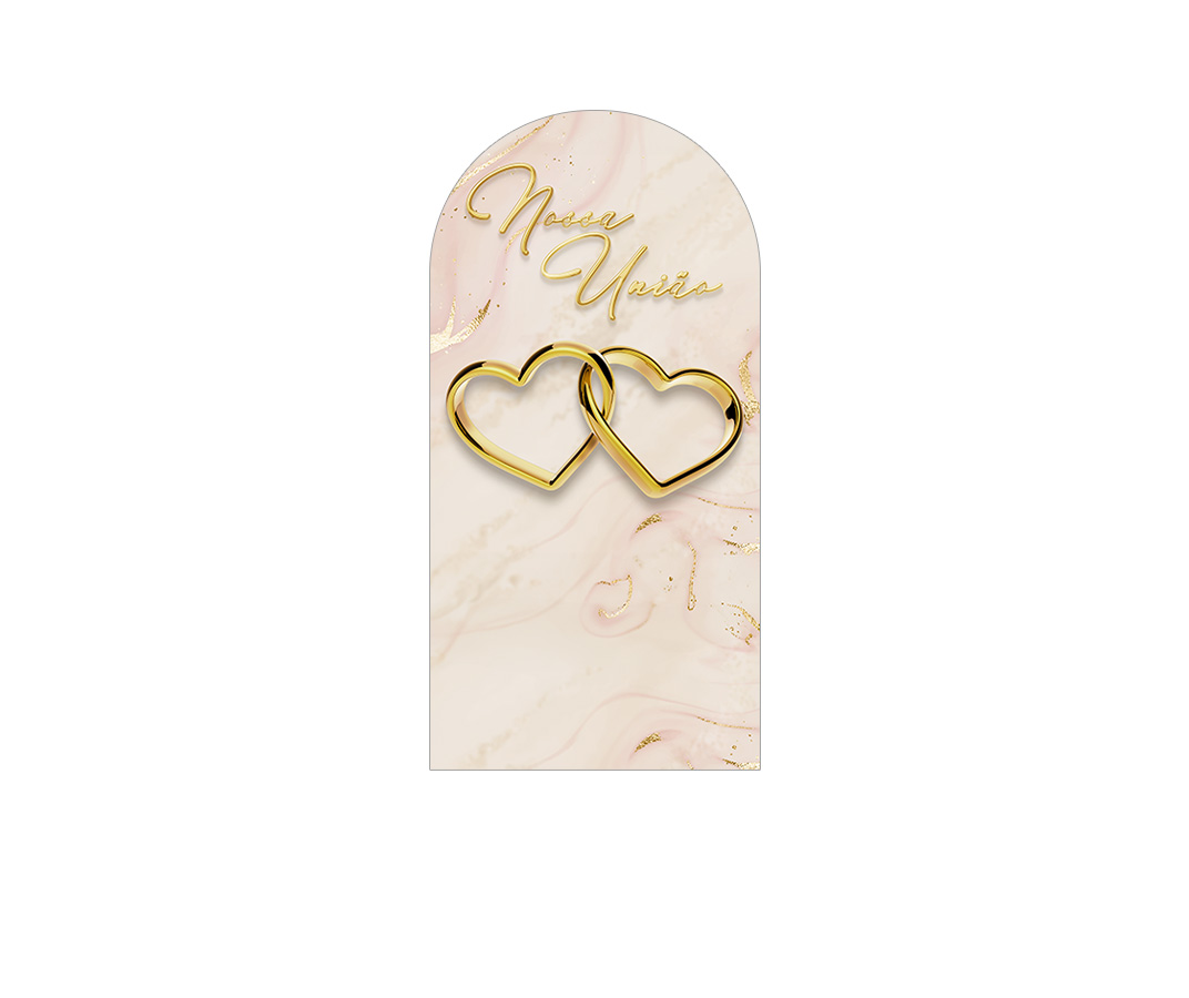 Painel De Festa Romano 1,00x2,00- Nossa União Alianças Dourado e Bege 039
