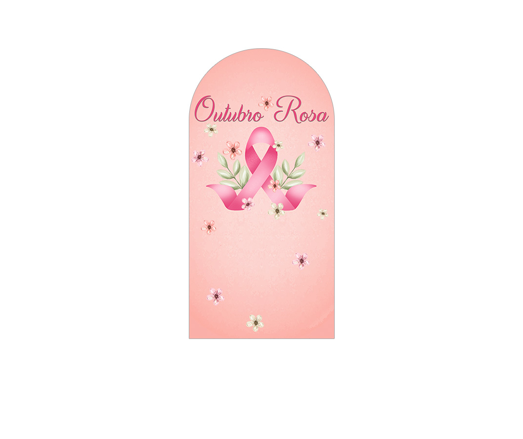 Painel De Festa Romano 1,00x2,00- Outubro Rosa com Flores Aquarela 021