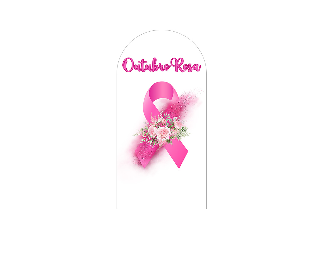 Painel De Festa Romano 1,00x2,00- Outubro Rosa Laço e Buquê de Flores 014
